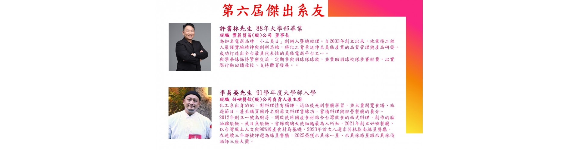 恭喜 許書林、李易晏系友 榮獲本系第六屆傑出系友獎